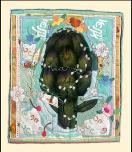 I hand paint the images, and layer fabrics and other fun things into a piece that is part painting, part quilting, part cloth sculpture.
