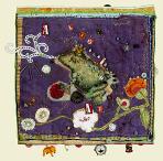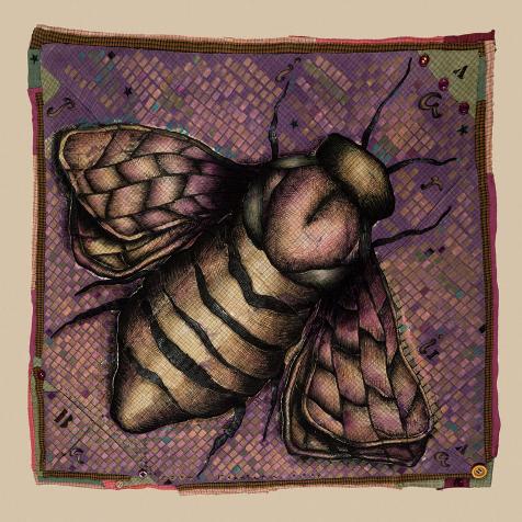 Detailed batiked and hand painted bee on hand painted, layered fabric. The original is approximately 18” square. Part of a private collection.